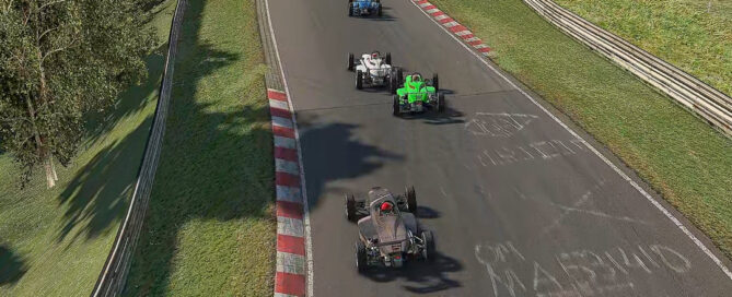 Zu gefährlich für die Nordschleife? 3 Runden mit dem Dallara IL15 INDY NXT Car In diesem Rennen der Ringmeister Serie starte ich mit dem Dallara IL15 INDY NXT Car aus der Pole Position. Im Ziel reicht es dann für Platz 3, immerhin ein Podium. Dieses Auto mit 450 PS, plus 50 PS mit push-to-pass und nur ca. 650 Kg (1420 lbs (dry, no driver)) ist schon grenzwertig für die Nordschleife. Aber es hat Spass gemacht ... :-) 13. Oktober 2025